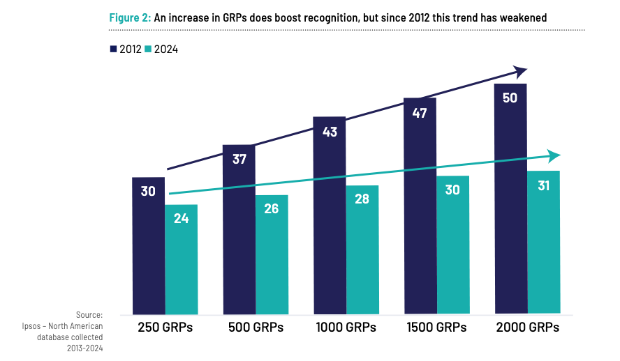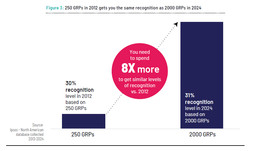 And advertisers must spend 8 times more to achieve the same level of recognition they achieved in 2012, according to the latest Ipsos publication “From Noise to Noteworthy”.